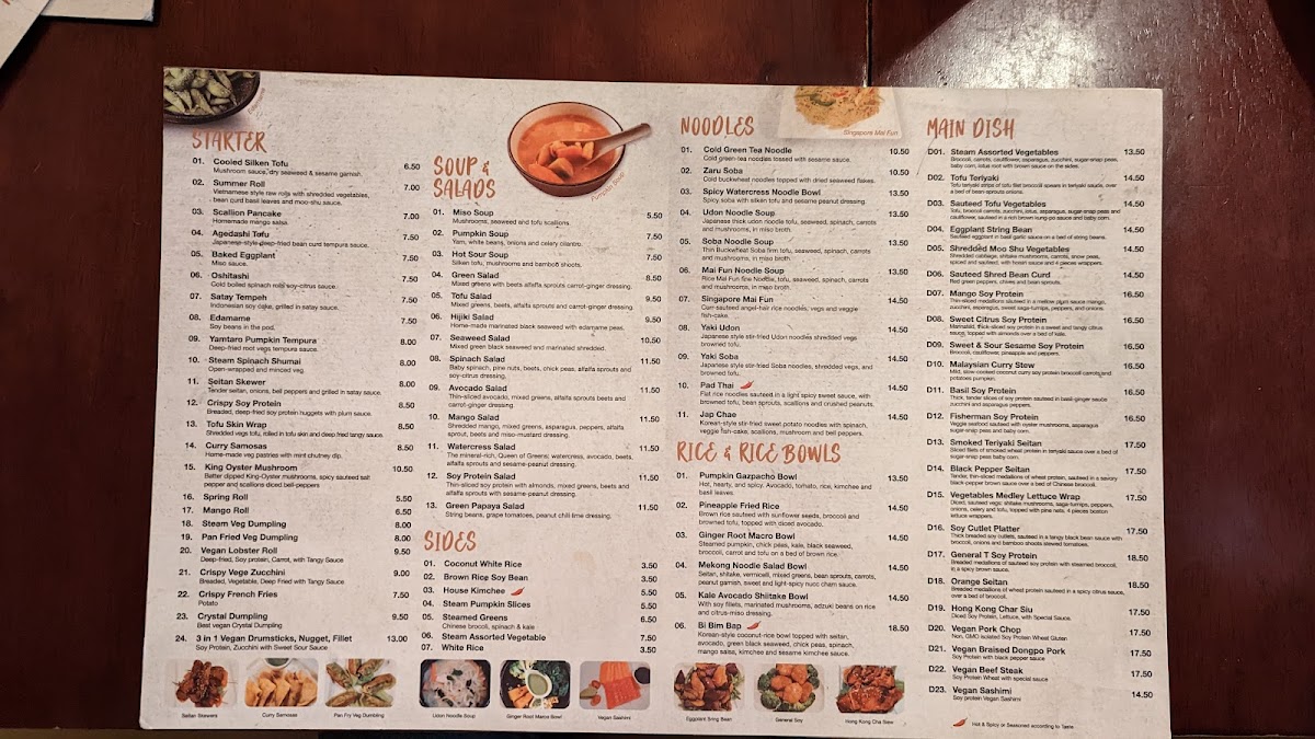 The menu at Vegan Ginger Root is a captivating tapestry of flavors, each dish intricately prepared to not only satisfy your hunger but also to tantalize your taste buds. Begin your culinary journey with their delightful Steam Assorted Vegetables—a vibrant mix that includes broccoli, carrots, cauliflower, and more, accompanied by a rich brown sauce on the side. The meal is thoughtfully served with comforting miso soup and fluffy rice, all for just US$19.00.