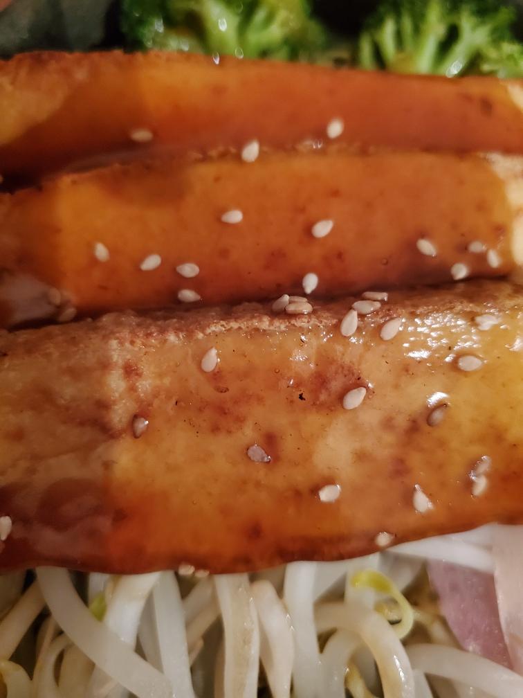If you’re in the mood for something a bit more indulgent, don’t miss the Tofu Teriyaki. Tender strips of brown tofu glazed in a savory teriyaki sauce rest atop a bed of bean sprouts, broccoli, and onions, completing a hearty meal that will leave you feeling both satisfied and nourished. This dish also includes miso soup and rice, making it an excellent value at US$19.00.